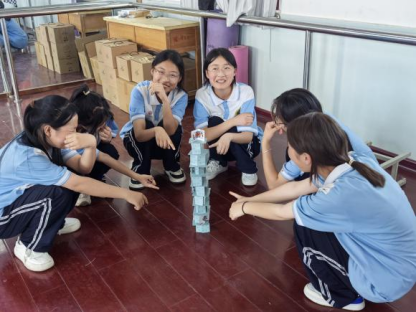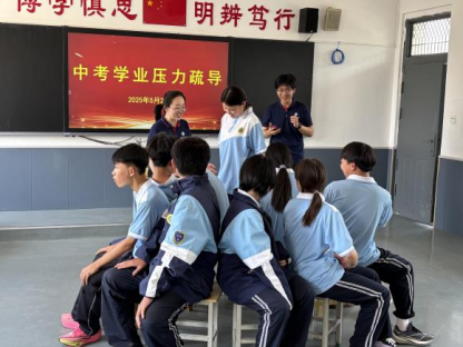 抵达校园后,文家中学主要负责人与实践队展开座谈,详细介绍了学生群体的年龄结构、心理发展特点及当前面临的主要成长困惑,为活动的精准设计和分类实施提供了重要参考。随后,实践队分组为不同年级学生开展具体工作。针对初一、初二学生,从学业压力、生活适应、人际管理等方面展开全方位心理测评,建立学生健康档案,撰写分类别健康报告;聚焦初三毕业生,开展以缓解中考压力与心态调适为主题开展团体辅导,通过“五毛和一块”破冰游戏、“抢凳子”理念传递、扑克牌高塔协作挑战及OH卡未来畅想等环节,帮助学生在互动中释放焦虑,树立积极的考试心态。